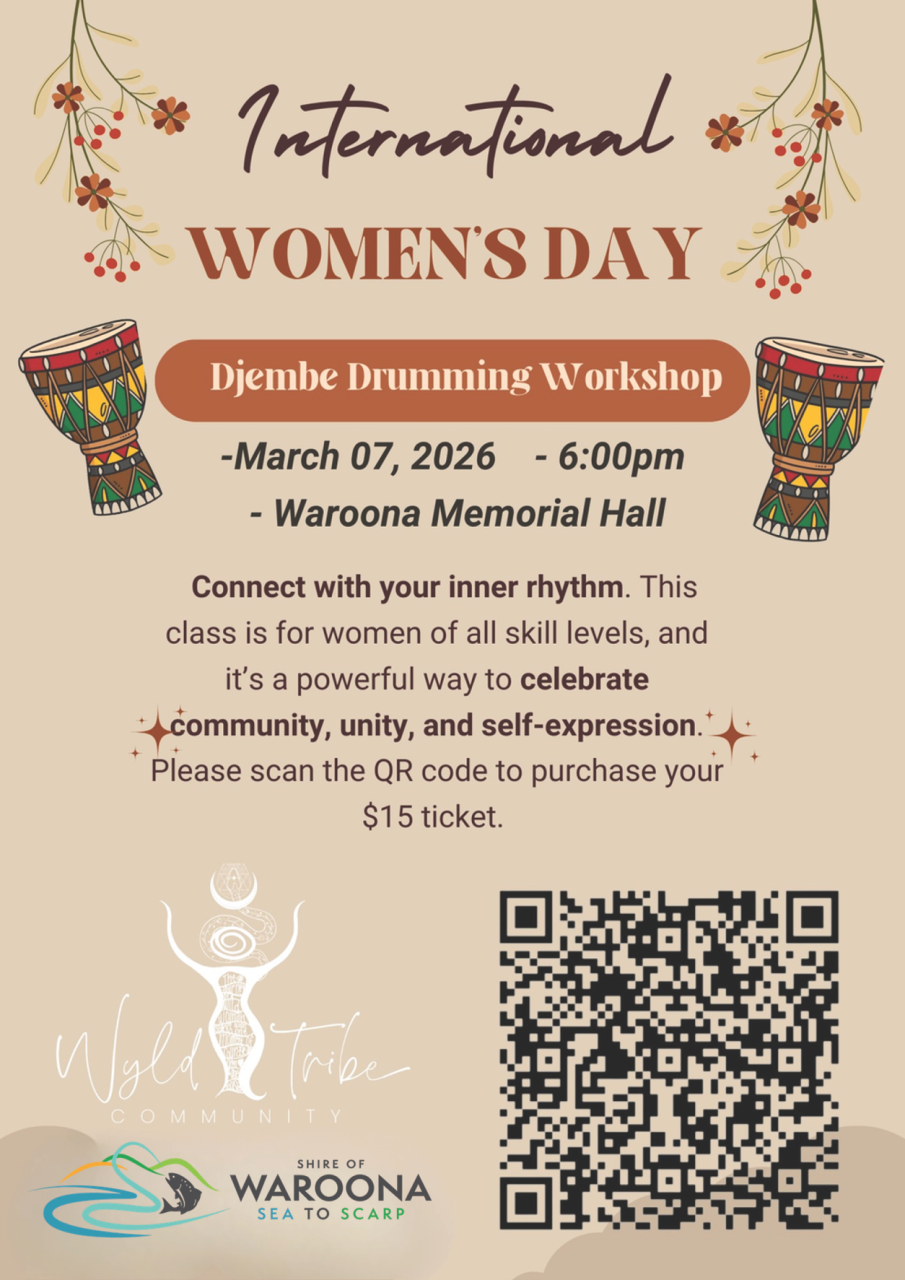 Spots are limited, so be sure to secure your ticket by scanning the QR code on the flyer or visit International Women's Day - Djembe Drumming Workshop Tickets, Sat, Mar 7, 2026 at 6:00 PM | Eventbrite