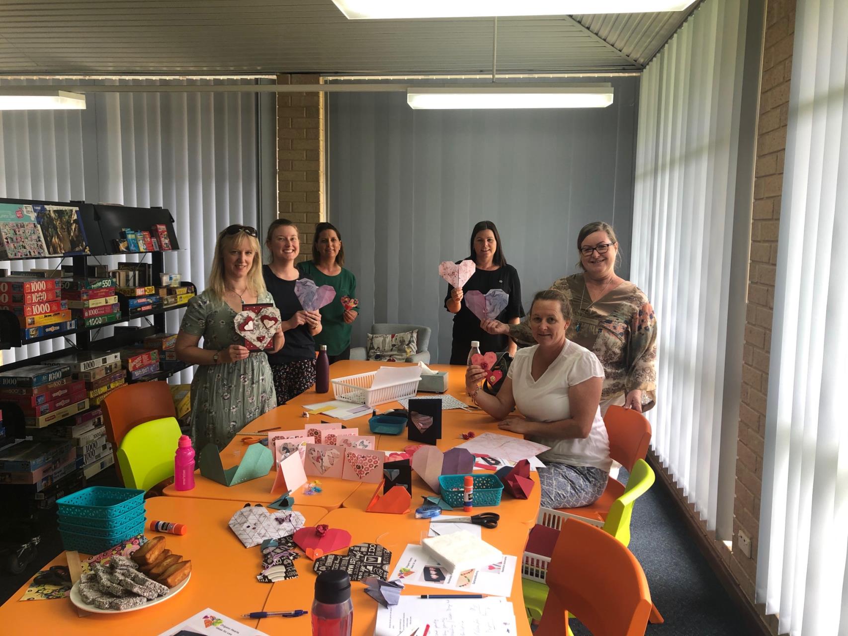 An interactive Origami Hearts workshop was held at the Waroona Library Tuesday 11 February, being the first activity of the Act, Belong-Commit 'Socialisation at the Library' series.